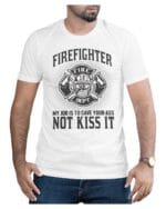 Show your appreciation for the brave with this humorous firefighter t-shirt. Featuring a bold and witty graphic about a firefighter’s dedication, this comfortable cotton half-sleeve tee is perfect for firefighters, fire department supporters, or anyone who admires their courage. It’s an ideal gift to honor these heroes. Support your local fire dept!