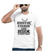 Live your passion with this comfortable white cotton tee, perfect for outdoor lovers. Featuring “Huntin’ Fishin’ Lovin’ Everyday” with antlers and arrows, it’s ideal for those who enjoy nature’s pursuits. Made from soft, breathable cotton. Product Details – Cotton. Origin of Country : India.